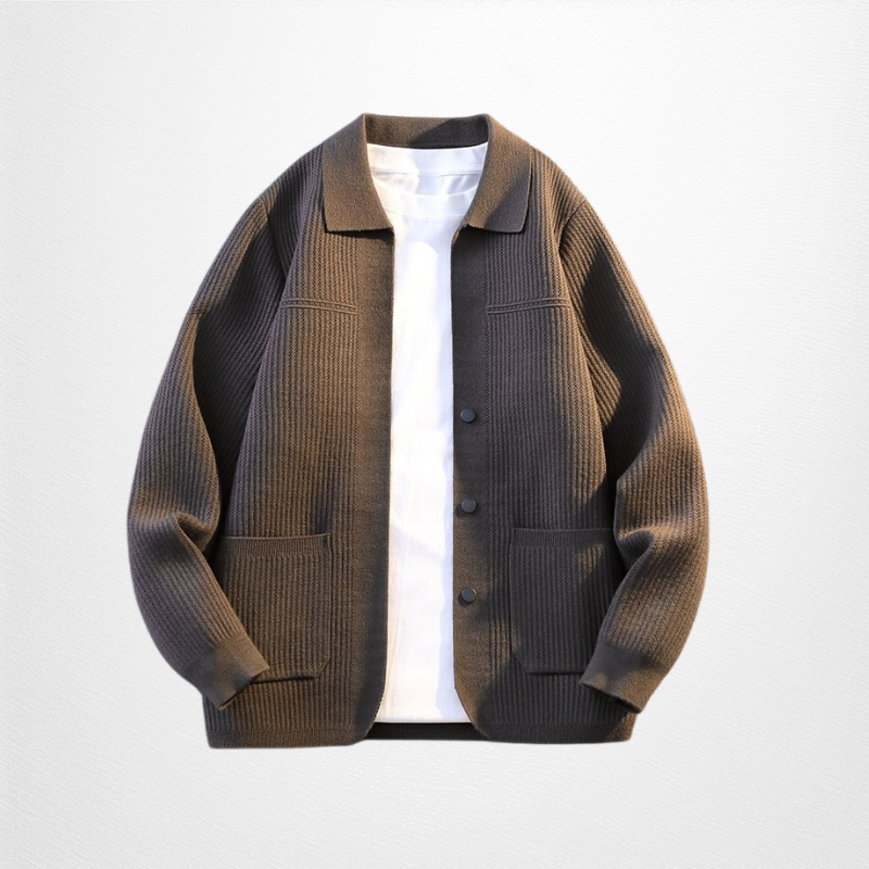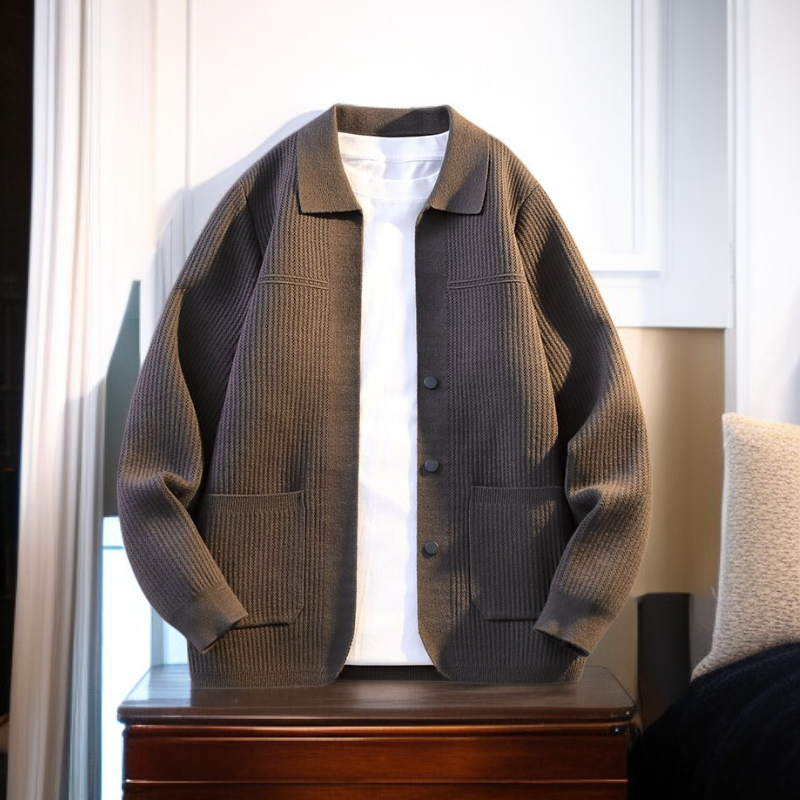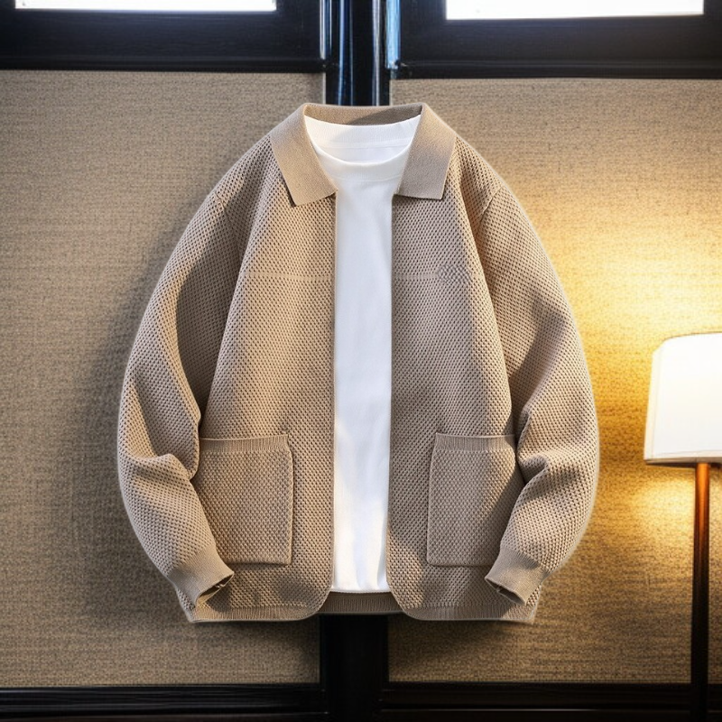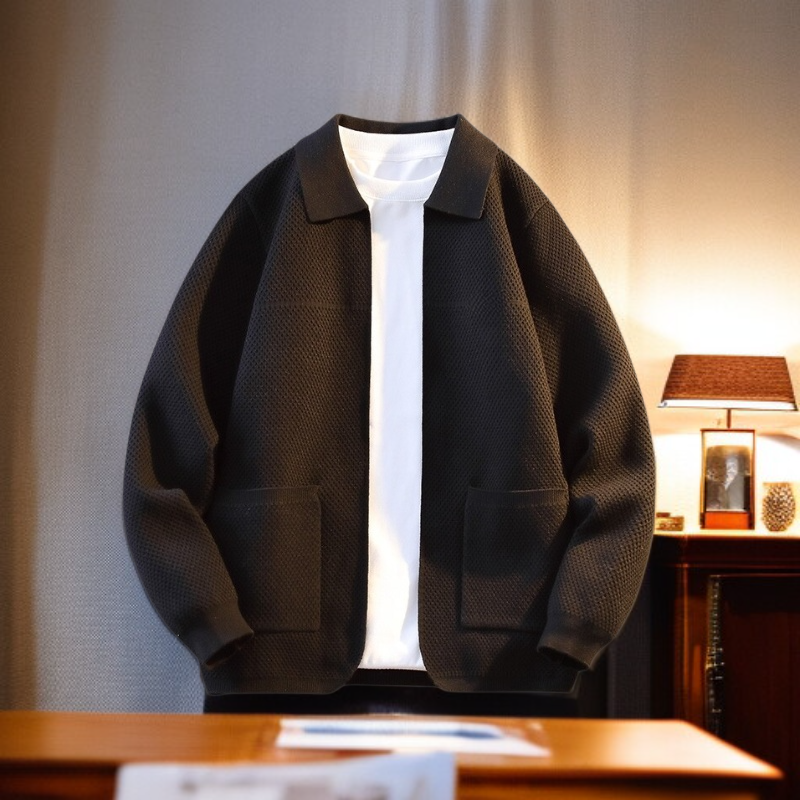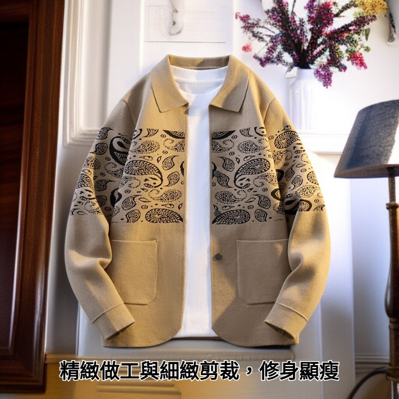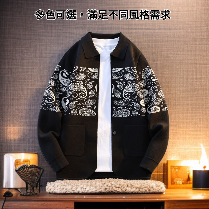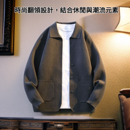 男士春秋針織開衫外套 潮流休閒翻領毛衣