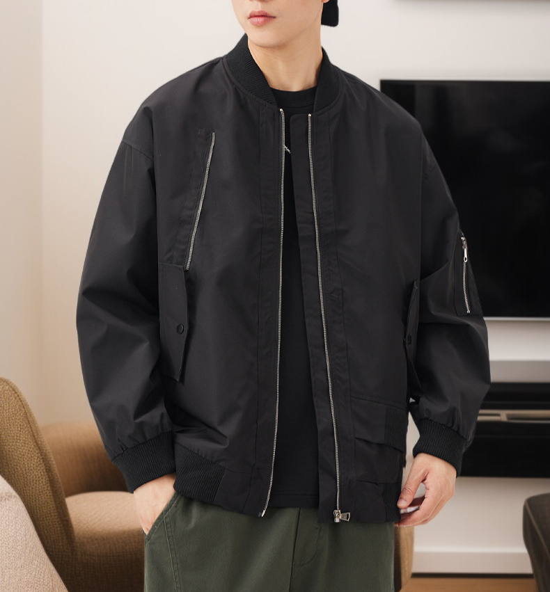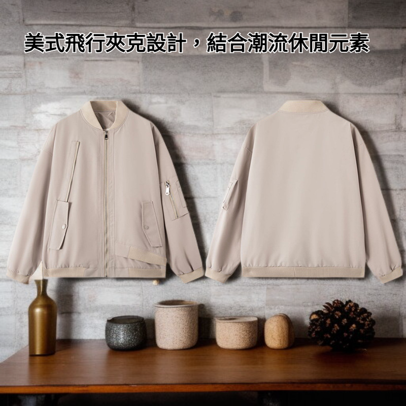 ● 美式飛行夾克設計,結合潮流休閒元素,輕鬆展現個人時尚品味,無論日常或出遊都能輕鬆駕馭。
