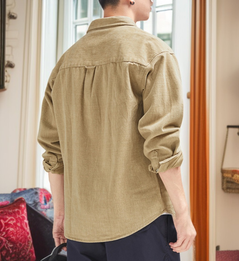 日系復古純棉刺繡白色長袖寬鬆男士外套開衫